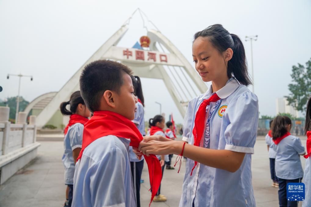 10月13日,在云南省红河县河口县,河口国门小学先锋青年团老队员为新队员围上红领巾。 10月13日是中国少先队成立76周年纪念日。新华社发(赵国晓 供图)10月13日,在云南省红河县河口县,河口国门小学少先队老队员集体为新队员戴上红领巾。 10月13日是中国少先队成立76周年纪念日。新华社发(赵国晓 供图)10月13日,河南省焦作市温县第三实验小学一年级学生宣誓入党。 10月13日是中国少先队成立76周年纪念日。新华社(徐红星 供图)10月13日,球队新生在温县第三实验小学行礼,河南省焦作市。 10月13日是中国少先队成立76周年纪念日。新华社发(黄福兴供图) - 上一篇:看照片学丨女人并不比男人逊色。秘书长温暖寄