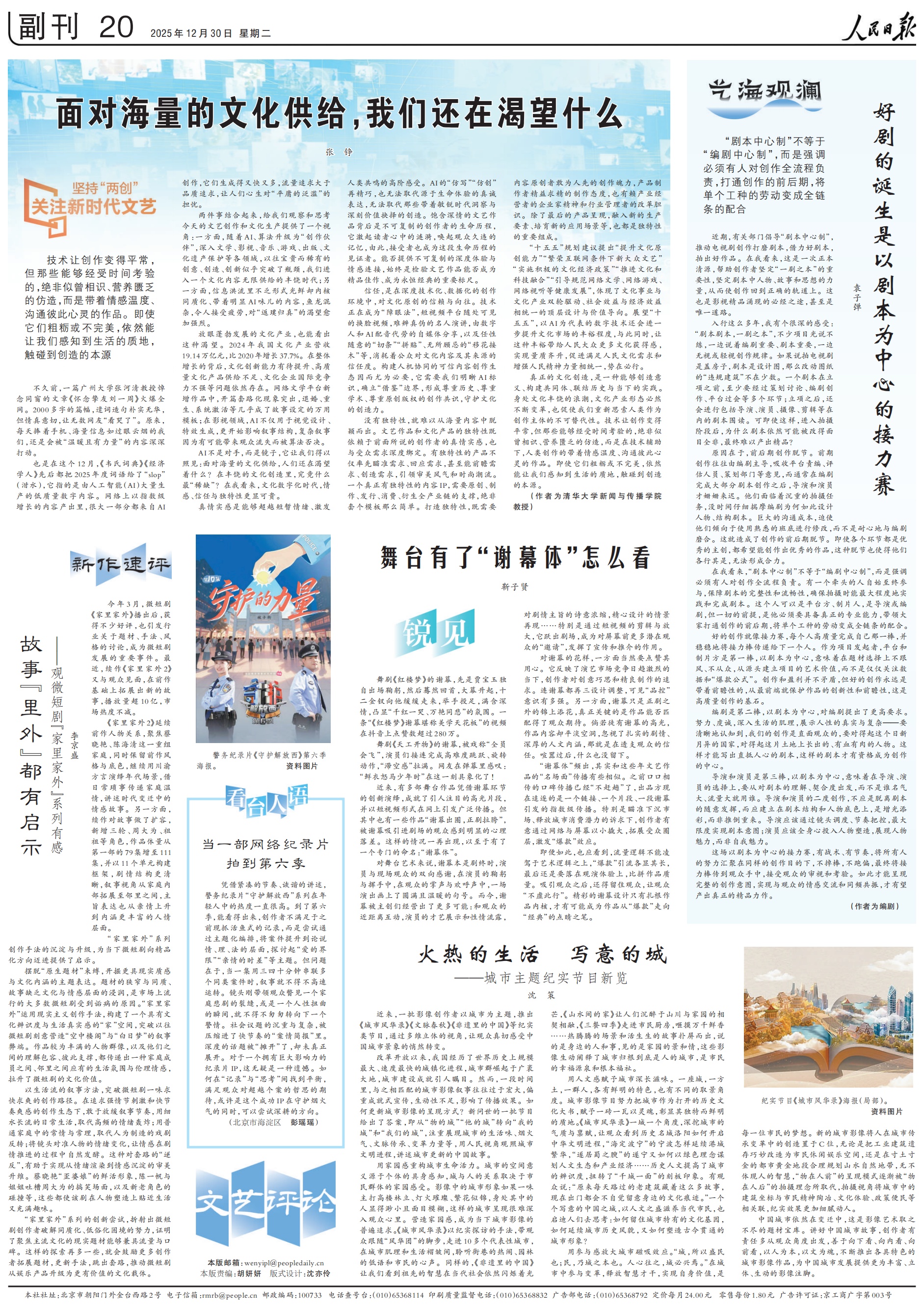 近期,相关部门提出“以剧本为中心体系”,推动电视剧剧本创作和打磨,用好剧本产出好作品。我认为,这是一个正视事实的机会,帮助创作者牢固树立“作品本源”的重要性以及剧本中人物、故事和思想的力量,让创作重回正轨。这是优质影视产品涌现的必经之路,甚至是唯一途径。从事这个行业多年,我有一种强烈的感觉,剧本是一部作品的基础。很多项目都是口头上做的,没有付诸实践。他们说作家很重要,剧本也很重要,但他们忽视或淡化了创意写作的规则。如果说拍电视剧就像盖房子,剧本就像蓝图,那么规划不到位的“违章建筑”案例也不少。明确。剧本在立项之前,至少要经过策划讨论、剧本撰写、平台会议等几个阶段。立项后,剧本会与导演、演员、摄影师、剪辑师等一起通读,但即使到了拍摄阶段,剧本变化也很大,很难拍出高质量的作品。为什么很难创作出高质量的作品?原因就在于早期作品与后期作品之间存在脱节。初始制作通常由编剧主导,平台编辑、测试人员、规划部门和其他人员也提供意见。通常,在编剧完成大部分剧本创作后,导演和演员才迟到。他们面临着艰巨的拍摄任务,没有花时间仔细理解编剧为什么要这样设计角色和构建剧本。由于巨大的沟通成本,必须通过以下方式进行修改:与熟悉的团队合作,而不是耐心地与编剧合作。结果,创作的早期和后期阶段出现了脱节。即使有一个各方面都很优秀的主创,每个人都想创造出伟大的作品,这种脱节也会让每个人都无法走自己的路,形成一个社区。在我看来,“以剧本为中心的体系”并不意味着“以作家为中心的体系”,而是强调整个创作过程必须有人负责。演员从头到尾全程参与,保证剧本的完整性和流畅性,并在拍摄过程中最大限度地练习和完善剧本。这个人可以是一个平台,可以是制片人,可以是导演,也可以是编剧,但所有的前提都是你有真正的专业技能,需要在制作的前、后阶段指导大家,把单一类型作品的努力变成全力配合。伟大的创造就像接力赛种族。每个人都以出色的品质尽自己的一份力量,并不断地将接力棒传递给下一个人。作为项目发起方,平台和制作方是您的首要任务。把剧本放在首位,意味着从源头上确立作品的艺术价值,而不是追随潮流或选题趋势,只注重数据或“成功公式”。创造与效益并不矛盾,但好的创造总是积极的。作品的创新和进步必须在前台得到保护。这是高质量制造的基础。编剧排在第二位,重点是剧本,这对编剧提出了很高的要求。需要努力、虔诚,深入生活的肌理,表达人性的真实性和复杂性。我们需要明确的是,我们的作品是直接与观众对话的,适合这个不断变化的国家和有血有肉的人物。飞到这里。只有这样,你才能写出直击人心的剧本,才有资格成为一名编剧。作为创作的中心。导演和演员是第三支柱。专注于剧本意味着根据对剧本的理解和契合度来选择导演和演员,而不是根据谁出名或平易近人。导演或演员的衍生作品不应该是脱离剧本的随意表达,而应该考虑到剧本的结构和人物背景,应该增加荣耀而不是重新发明轮子。导演必须通过控制镜头的进度和节奏来最大限度地实现剧本的意图。演员应该专注于塑造角色并表达其魅力,而不是他自己的魅力。这场有脚本的接力赛既具有战术性又具有节奏性。同样的创作目的,不放开接力棒,也不偏离。每个人的努力都会我在这件事上团结一致。证人最终将交到公众手中,由公众对其进行检验和检验。只有这样,才能呈现出充分的创作意图,实现与观众的情感沟通和共鸣,才能创作出真正高品质的佳作。 (作者为编剧)来源:《普韦布洛日报》2025年12月30日第20页,原标题:一部好剧的诞生,是以剧本为中心的接力赛。